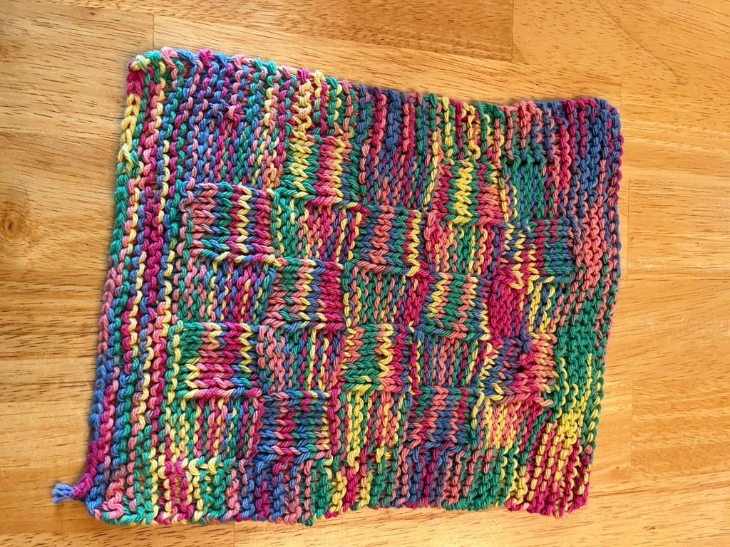 Each of the dishcloths are available in duplicate. Rectangular cloths are knitted and measure approximately 8 inches by 9 inches. Square cloths are crocheted and measure approximately 10 inches by 10 inches. Each cloth sells for $5.00 each.